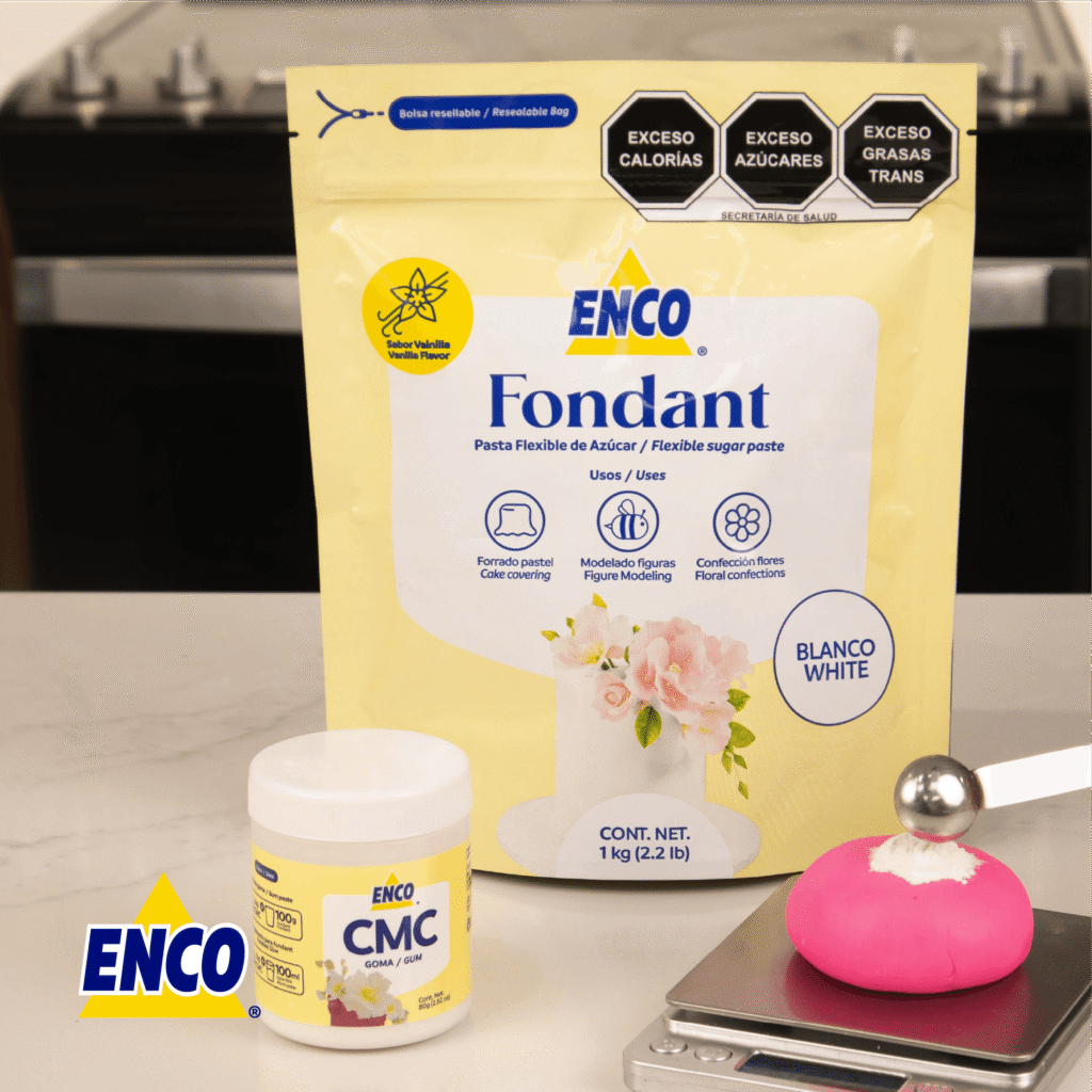 El CMC (carboximetil celulosa) es el secreto para lograr un fondant más firme y con mejor definición. Te ayuda a que tus figuras y modelados mantengan su forma y sequen más rápido, ideal para decoraciones detalladas 👩🍳💫