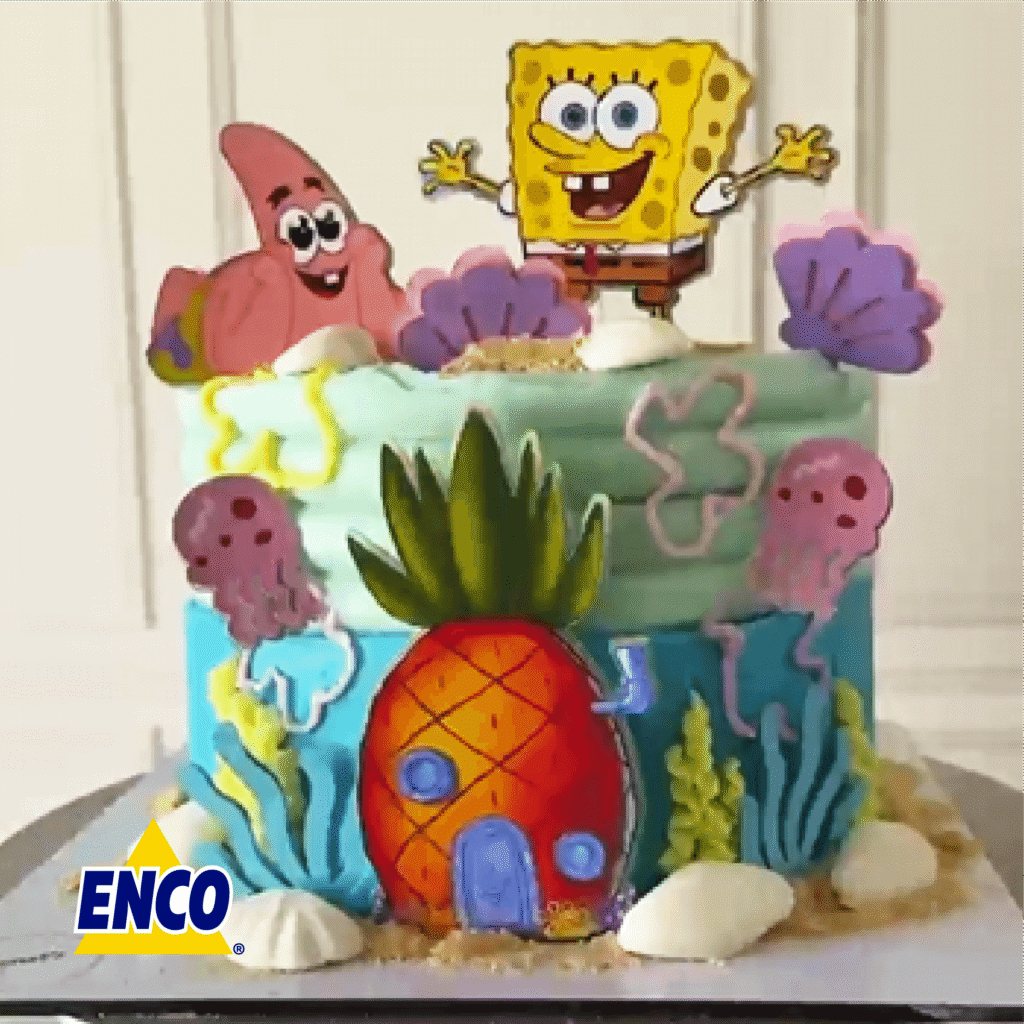#FamiliaENCO @monetsmty nos comparte esta increíble decoración inspirada en el estreno de la nueva película de Bob Esponja 🍍✨ Para lograr este diseño se usaron los Colores ENCO: • Flor de Lavanda • Amarillo Canario • Azul Cielo • Verde Neón • Rosa Brillante