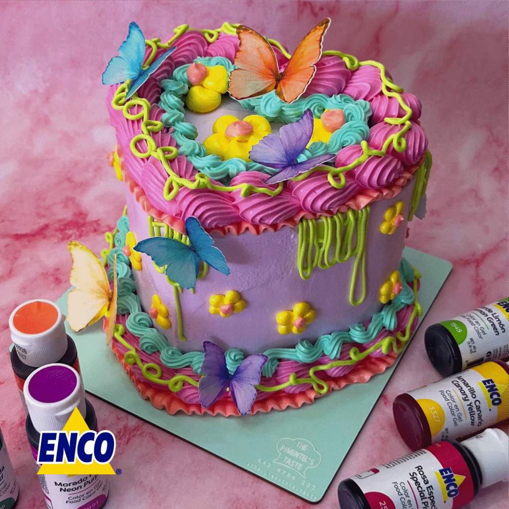 🌸 Pastel vintage para primavera ¡Súper cute! @the.pimentels.taste nos comparte esta idea de pastel vintage con colores súper dulces y llamativos, decorado con flores y mariposas, perfecto para la temporada primaveral. 🦋🎂 Para esta creación se utilizaron los Colores en Gel ENCO: 🧡 Coral 💚 Esmeralda 💜 Morado Neón 💗 Rosa Especial 💚 Verde Limón […]