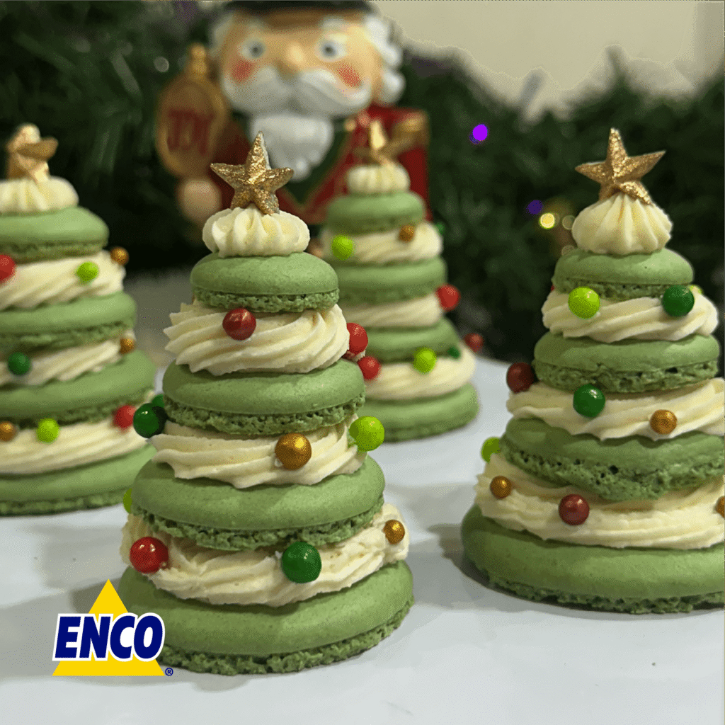 @ale_pei_reposteria nos comparte esta increíble idea navideña, perfecta para darle un toque adorable a tus mesas festivas.Para lograr ese verde suave y elegante, utilizó el Color: Dulce Romero ENCO en una tonalidad bajita. ¡Queda hermoso en macarons!