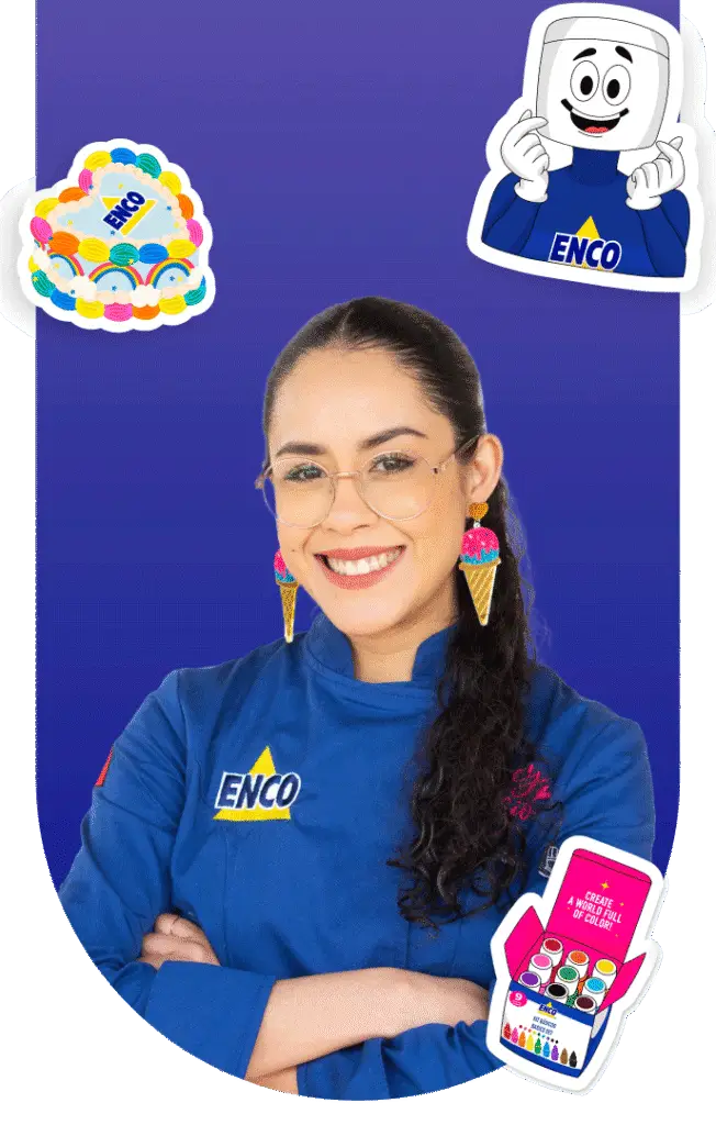 Tenía poco que me salí de la universidad porque la carrera en la que estaba no me encantaba, no tenía idea de lo que me apasionaba hasta que un día encontré un tutorial de decoración de pasteles. Me pareció increíble este mundo que era nuevo para mi, pasaba horas y horas viendo videos, así que un día súper emocionada hice royal icing y me pareció increíble, quedé maravillada de todo el arte en azúcar que se puede hacer, así que comencé a hacer pasteles y galletas decoradas, desde el inicio supe que eso era lo mío, y que me hacía muy feliz. Luego me casé y me mudé de ciudad, hacía pasteles para mis amigos y un día me hicieron un pedido formal, a partir de ahí no dejamos de trabajar, y entre mi esposo y yo tenemos el negocio de pasteles personalizados para eventos desde hace 6 años junto con mis dos hijos; actualmente sigo con la venta de pasteles, imparto cursos de repostería creativa, soy creadora de contenido, participo en la sección de cocina en un programa de televisión de mi ciudad y disfruto tanto ser parte de la familia de Enco Alimentos💖